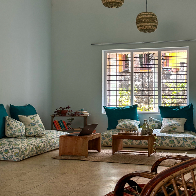 Set on a quiet slope near the cliffs of Varkala, Sattva Retreats offers a calm, grounded space just a short walk from the ocean. Slightly away from the main road but conveniently accessible and embraced by trees, it holds a natural sense of seclusion — ideal for slow stays, deep thinking, and meaningful gatherings. Sattva was built with care to welcome both retreat seekers and those who hold space for others.